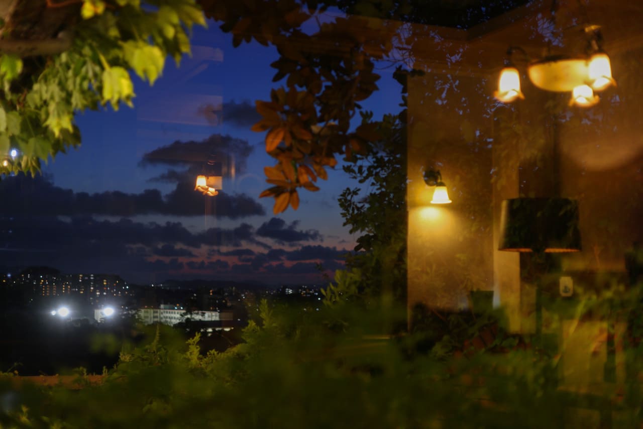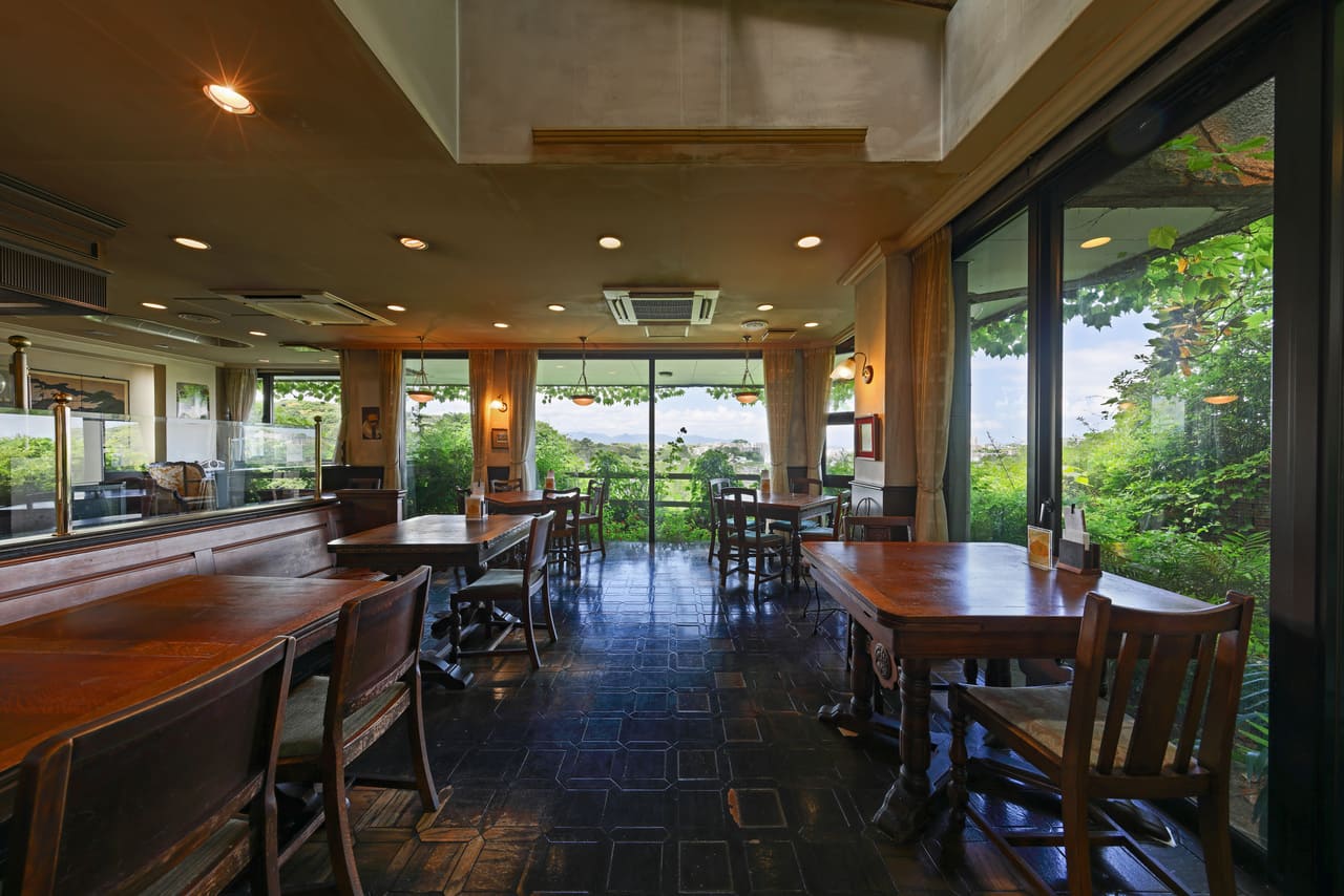 洋食やちゃんぽんが有名で、大きなガラス窓からは平和緑地の四季折々の景色が見渡すことが出来、遠くは福岡タワーや百道方面など遠望できる。