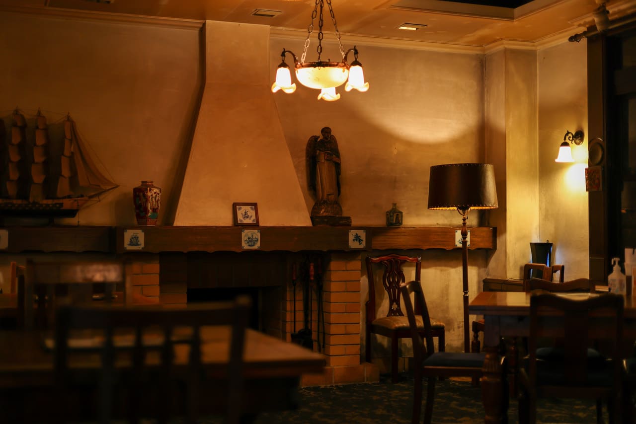 内装は欧風のアンディーク家具で彩られており、私の青春時代の憧れであったカフェレストラン「銀嶺」(長崎市)や、長崎グラバー邸を彷彿とさせる佇まい作りが目標である。