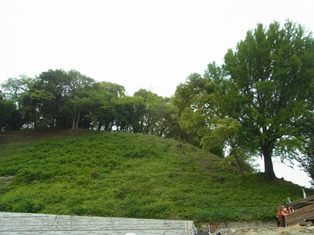 荒生田の川沿いの工事中の道から山越えする感じで進むと大きな道路へ出た。右手に向かい交通量が多く、かまびすしく落ち着かない路を忍耐強く少しずつ西進。面白くない上に排気ガスと広い幅員の割に狭い歩道、さすが北九州(すみません)。無我の境地でと、我慢しながら歩いていくとやがて右手に丸い小山らしきものが見えてきた。高炉台公園だ。