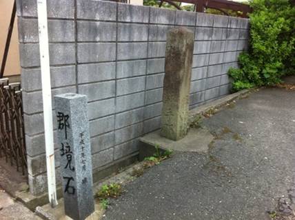役場過ぎて、やがて国道から右分岐して細い道となり、町屋が続き街道らしい雰囲気となる。途中に宿場間の休憩所となった小休処跡、郡境石などの道標があった。