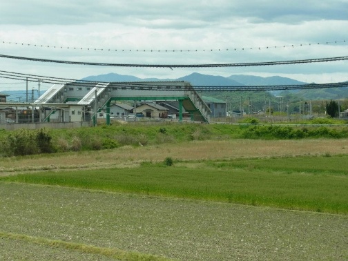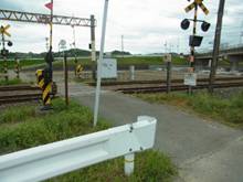 新しい道へ。古地図が参考にならない感じになったが、地図とGPSで方向確認しながら田んぼの横を通って国道側へ。踏み切りを越えて何とか国道に合流、そのまま歩を進める。