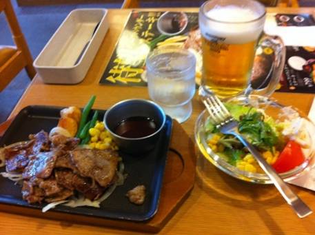 昼食のロースステーキ定食780円、えっ安い?出て来て納得、写真のごとく!まあ味も含めノーコメント。でもおなかが満たされてとりあえず満足(笑)