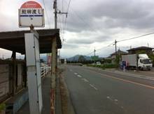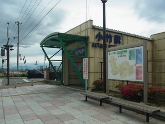 しばらくすると祠と長崎街道の道標!久しぶりの街道情報。そのまま遠賀川沿いに国道を進むが側道がアップダウンの連続、モーグルのこぶのような感じ。しかも単調な一本道。非常に歩き辛い。まあ、歩道が有るだけましかもしれないが。時計や地図を何度も見ながら我慢の子、やっと見えてきた小竹駅について小休止。待合室らしきものはあったが街道資料の展示は無かった。駅を過ぎてそのまま国道沿いを進む。