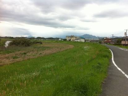 ファミレスの先、国道を横切るように東側に入って行く。道なりに進むと再び遠賀川の川沿いに。