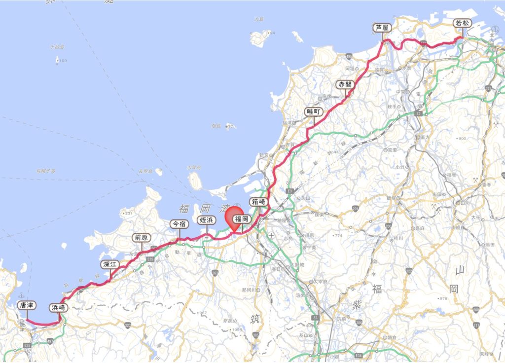 自宅マンションからは歩いて5分程に地下鉄空港線(筑肥線)赤坂駅があり、この地の利を生かすことが出来る。難点は、進んで行くたびにマーキング地点が遠ざかっていくので早起きしなければ歩く時間が減ってしまう(笑)ことと、小倉逆方向に向かうときは?・・・あまり深く考えないことに(笑)、ゴールは若松洲口番所跡ではなく九州の日本橋、小倉常盤橋とした。