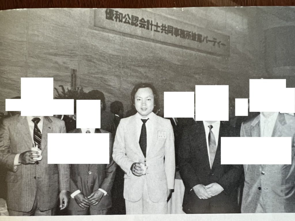 開業後まもなく、全国グループ創設のご縁があり、帝国ホテルの設立パーティに全国から公認会計士が40名ほど集まった(多分最年少)。中に辻・本郷税理士法人の会長である本郷先生や山田アンドパートナーズ創業者の山田さんなどもおられ、今考えてみると後々有名人揃いのメンバーが集まっていたのが何とも不思議な感がする。